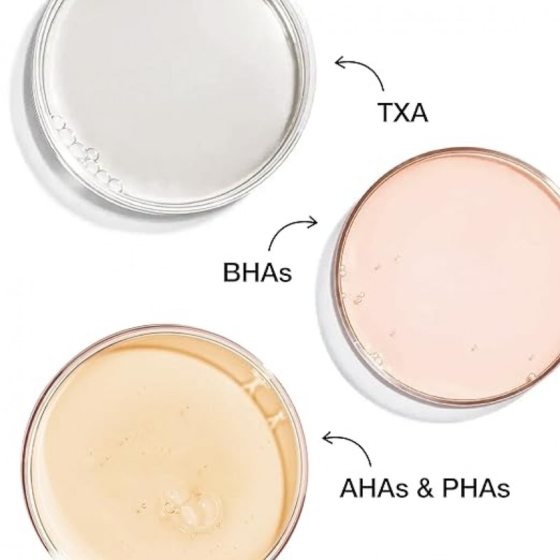 Una nueva versión de las almohadillas astringentes típicas, nuestro tratamiento único ofrece tanto exfoliación química con cuatro familias de ácidos (compuestos por siete ácidos únicos), además de exfoliación física con una almohadilla de fibra de micro-trinero.